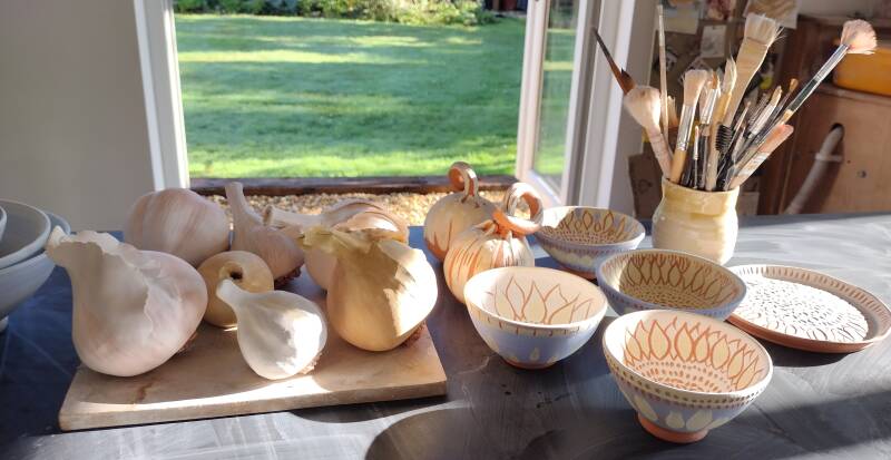 Studio Puggle is located in Pennington, Lymington, Hampshire. Rachel lives with husband Tim and dog Griff. The studio was created as a space for Rachel to share with friends and create sculpture inspired by the local surroundings, be it the garden, the kitchen or the wonderful New Forest and coastline. Rachel shares her studio with her beloved dog, Griff, who is a cross between a beagle and a pug, he's a puggle!